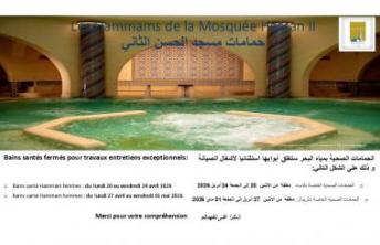 BAINS SANTÉ HAMMAMS MOSQUÉE HASSAN II- AVIS DE FERMETURE EXCEPTIONNELLE-AVRIL 2026